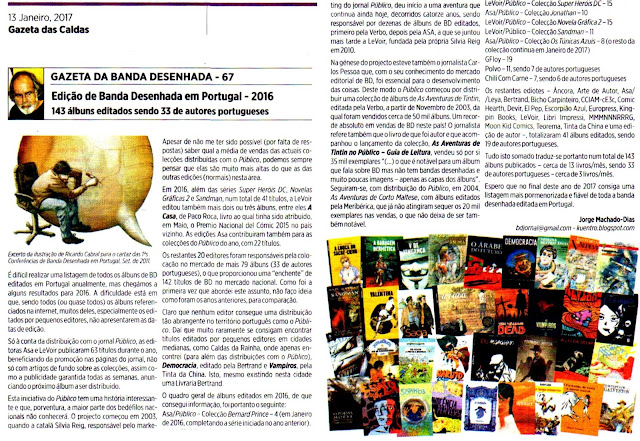 Depois de publicado este meu texto na Gazeta das Caldas em 13 de Janeiro, dei com outros números das edições portugueas de BD em 2016, no blogue de Pedro Cleto que, no post com o título