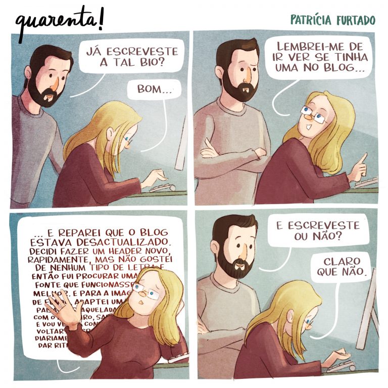 Juntar a escrita às imagens continua a ser a sua ocupação de sonho, pelo que tenciona investir cada vez mais tempo na banda desenhada. Pública diariamente um cartoon em quarenta.eu e tem vários projectos e colaborações na calha, tanto de escrita como de desenho.