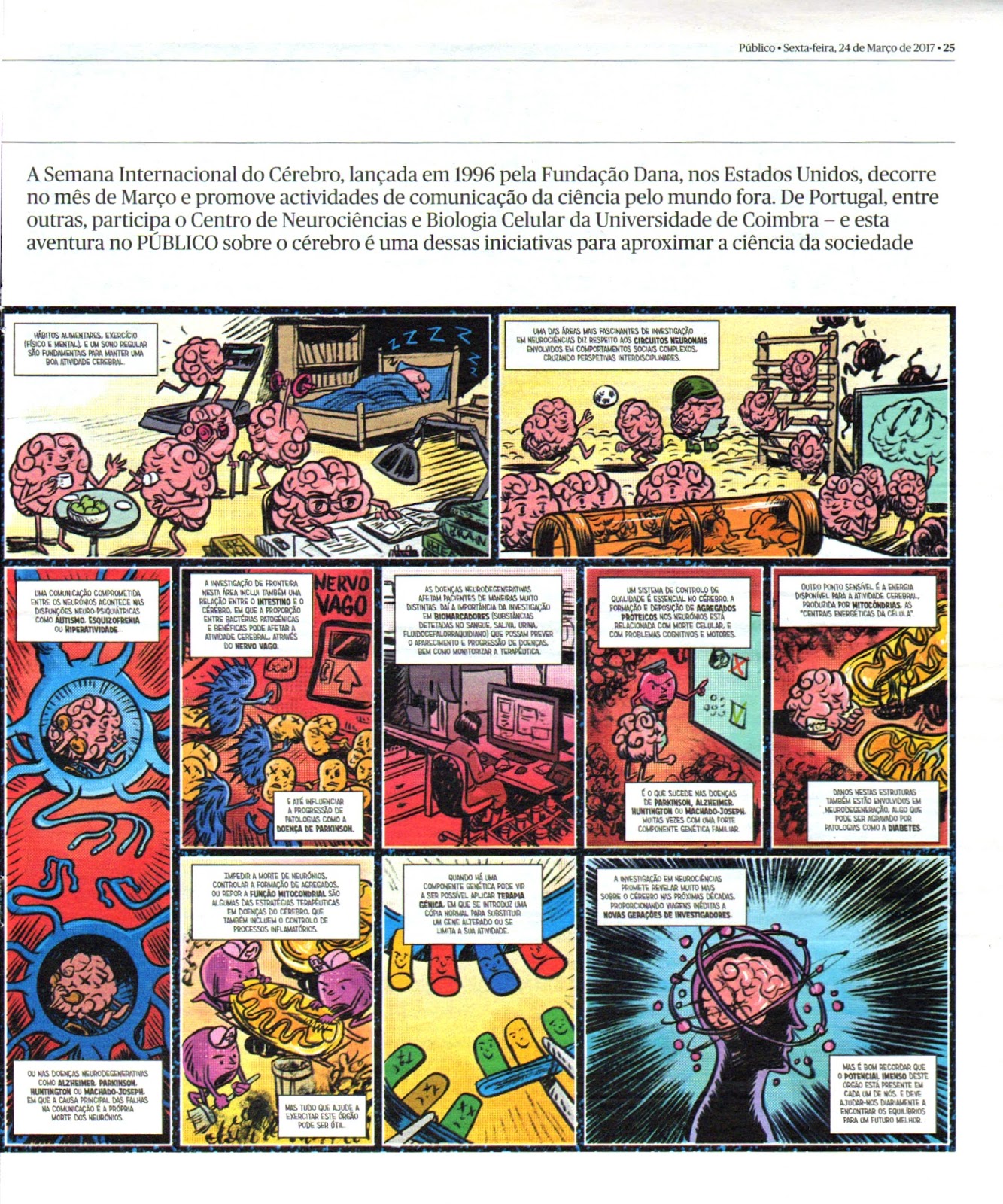 A Semana Internacional do Cérebro, lançada em 1996 pela Fundação Dana, nos Estados Unidos, decorre no mês de Março e promove actividades de comunicação da ciência pelo mundo fora. De Portugal, entre outras, participa o Centro de Neurociências e Biologia Celular da Universidade de Coimbra – e esta aventura no Pùblico sobre o cérebro é uma dessas iniciativas para aproximar a ciência da sociedade.