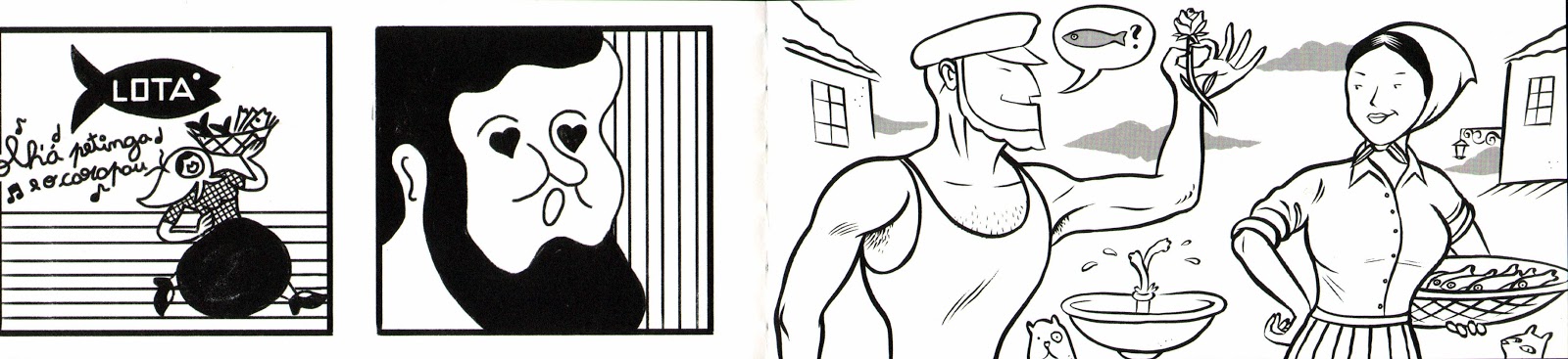 Foi com esta pequena ideia no bolso que nos reunimos com a Arranha-céus para nos ajudar neste projecto. Combinámos uma reunião, pela tarde, num pequeno restaurante lisboeta e à medida que a conversa e algumas cervejas fluíam o projecto foi ganhando corpo. Porque não editar um livro com as ilustrações? Boa. Onze ilustrações não chegam para um livro. Porque não propomos fazerem uma pequena banda desenhada para acompanhar a ilustração? Boa. Porque não fazer um cadáver esquisito com as bandas desenhadas? Boa. Com os painéis podíamos fazer uma exposição? Boa. Por volta da hora de jantar estava criado o projecto Desenhar por cima da conserva. Depois foi um ano ao ritmo bom e mensal de um desenho ao vivo, no Mercado da Ribeira. Uma festa que passou depois por Setúbal, pelo Museu do Trabalho, no âmbito da Festa da Ilustração, com todos os trabalhos expostos pela primeira vez. Boa. Agora fez-se livro para abrir ainda mais os apetites. Boa.