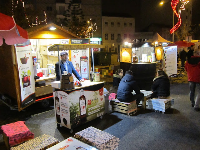 Este ano houve menos roulotes-tascas do que no ano passado e eu e a Clara fomos ao repasto, no almoço e jantar de sábado, repetindo no almoço de domingo. Comecei por uma “tasca” portuguesa com plumas de porco preto, infelizmente em pão se supermercado, diga-se. O melhor foi mesmo a ementa Húngara (da Transylvania, com pão oco cozido (ou assado?) na altura, com recheios diversos, típicos da região. No almoço de domingo fui para as salsichas alemãs, com pão cozido no local, também uma maravilha.