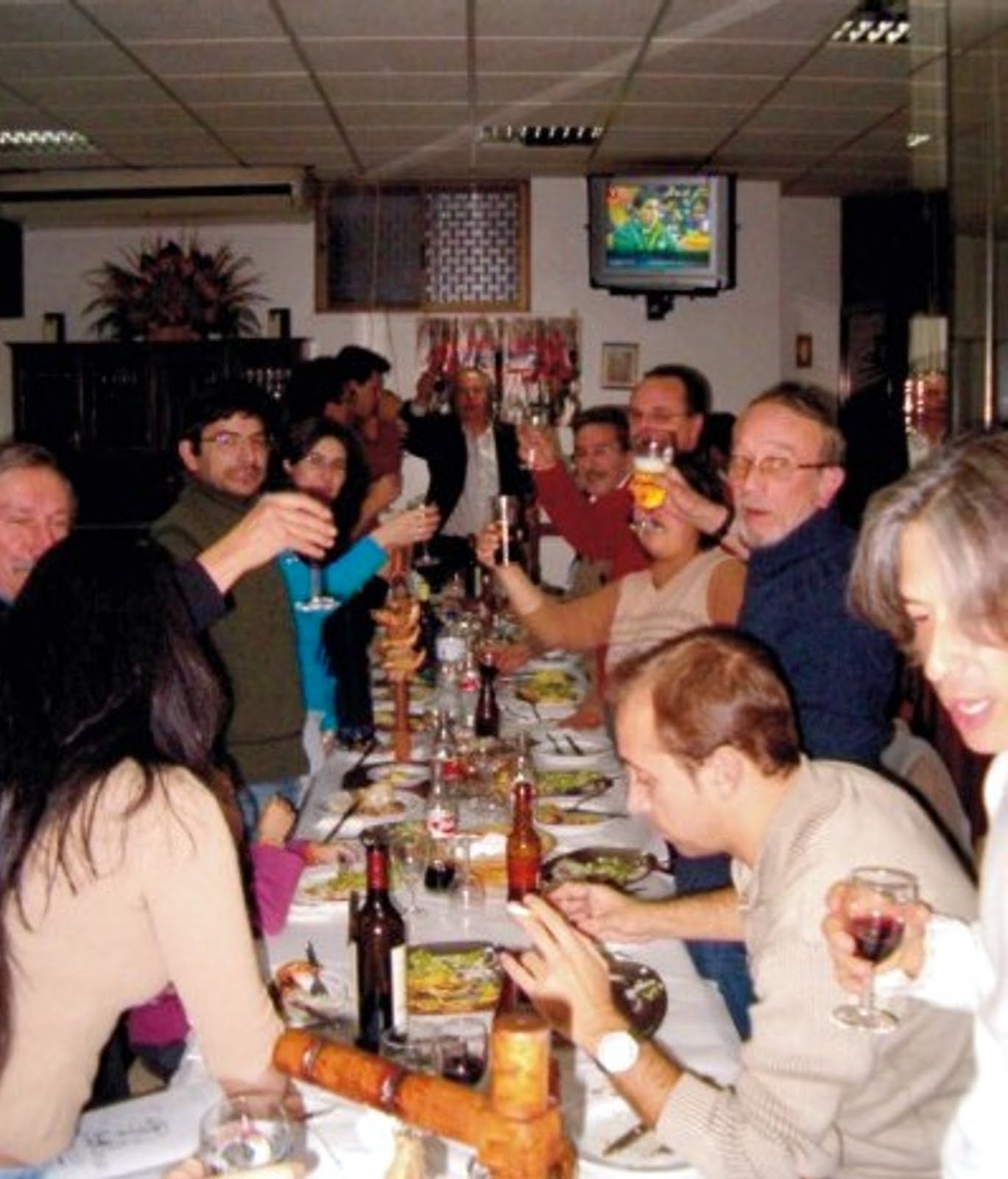 A seguir à sessão de entrega dos prémios desse Salão, o grupo "invasor" ido de Lisboa, foi jantar, com Carlos Rico (organizador do Salão), ao restaurante A CAVE. Aqui ficam duas fotos desse jantar, onde se podem ver José Antunes e família, e a foto de "quase" conjunto para o brinde final:
