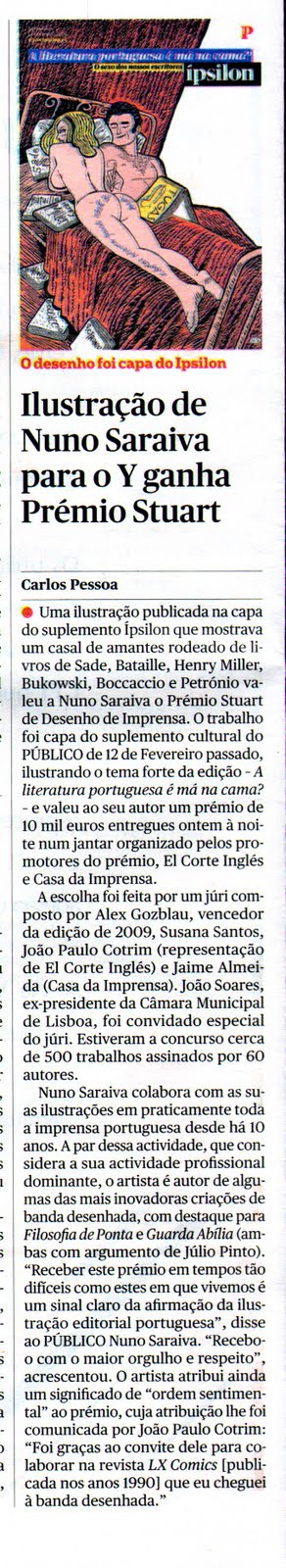 Jornal de Notícias, 19 Junho 2010FRANÇA ACOLHE AUTOR DE BD LUSO - Nelson Martins estreia-se em álbum com "Tout sur les célibataires"F. Cleto e PinaNa próxima terça-feira, chega ao mercado francófono "Tout sur les célibataires", desenhado por Nelson Martins, português, de 37 anos, formado em Design de Comunicação, que, assim, se estreia em álbum, após ter publicado em fanzines, em jornais e na internet".