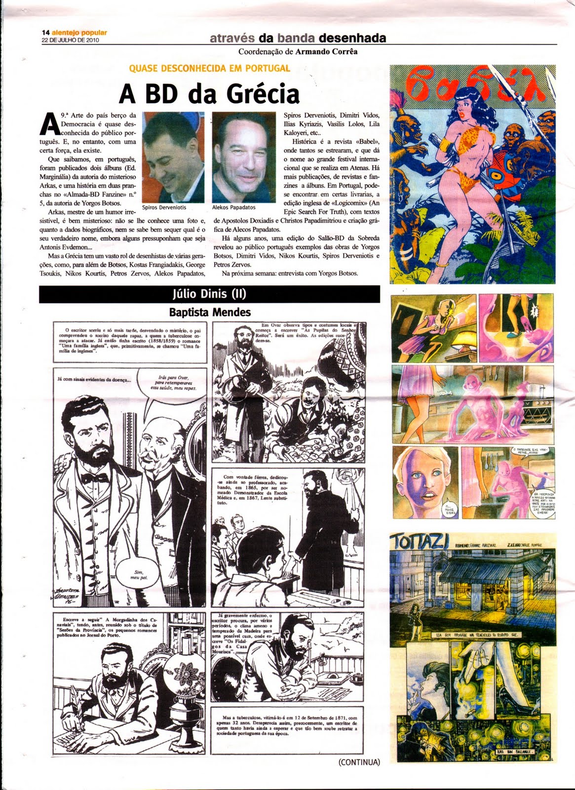 Depois fala-nos da banda desenhada grega, que conhecemos muito mal (a língua não ajuda nada) e entrevista um autor grego, Yorgos Botsos.