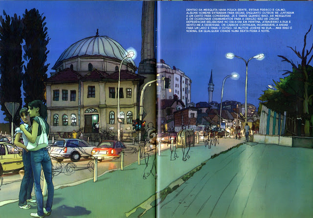 Mas há lugar a surpresas, claro. «Pensei encontrar um país martirizado pela guerra. Das notícias das valas comuns, das deportações forçadas, dos milhares de refugiados e desaparecidos, era de esperar um país cinzento, triste, mas a vida decorre normalmente... e as raparigas aqui são realmente bonitas» - eis as primeiras impressões de Ricardo acerca do Kosovo, registadas no livro, que, à semelhança do seu predecessor, surgiu de forma mais ou menos inesperada. «Não fui ao Kosovo com o objetivo de fazer este livro», diz. Mas o fracasso do projeto inicial que o levara ao novo país - um álbum de banda desenhada tradicional, encomendado por uma editora francesa, que contaria uma história passada na altura da independência - deu origem a uma outra oportunidade e nasce assim NewBorn, uma maneira diferente de sentir e retratar uma nação que começa a dar os primeiros passos em direção ao futuro. Mas, à semelhança desse caminho, a viagem de Ricardo não foi livre de percalços... «Vivi muitos episódios... Até me partiram uma máquina fotográfica acabada de comprar», conta Ricardo, que se foi apercebendo de que não se pode encarar sempre com ligeireza e descontração a realidade de um país que sofre as sequelas de um conflito: «Embora as pessoas queiram olhar para o futuro com esperança e pôr para trás tudo aquilo de mau que se passou, ainda há questões a resolver, no Kosovo.» Com outro alcance, um episódio retratado no livro que «visualmente ilustra essa tentativa de esquecer o que aconteceu» é o desenho que mostra as fotografias dos desaparecidos na guerra ainda presas às grades do Parlamento kosovar: «São centenas de retratos que estão lentamente a desaparecer e sente-se que isso é um pouco o que se passa com a memória das pessoas.»