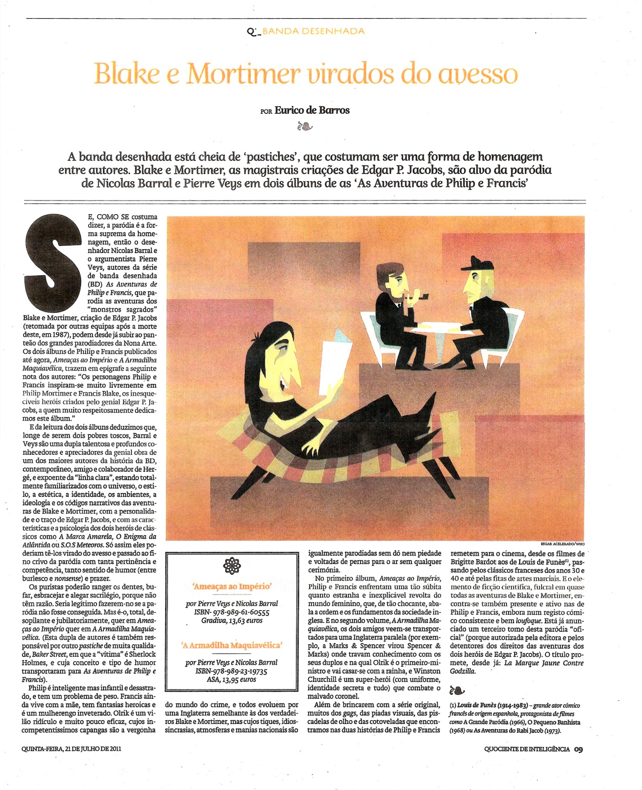 E da leitura dos dois álbuns deduzimos que, longe de serem dois pobres toscos, Barral e Veys são uma dupla talentosa e profundos conhecedores e apreciadores da genial obra de um dos maiores autores da história da BD, contemporâneo, amigo e colaborador de Hergé, e expoente da "linha clara", estando totalmente familiarizados com o universo, o estilo, a estética, a identidade, os ambientes, a ideologia e os códigos narrativos das aventuras de' Blake e Mortimer, com a personalidade e o traço de Edgar P. Jacobs, e com as características e a psicologia dos dois heróis de clássicos como A Marca Amarela, O Enigma da Atlântida ou S.O.S. Meteoros. Só assim eles poderiam tê-los virado do avesso e passado ao fino crivo da paródia com tanta pertinência e competência, tanto sentido de humor (entre burlesco e nonsense) e prazer.